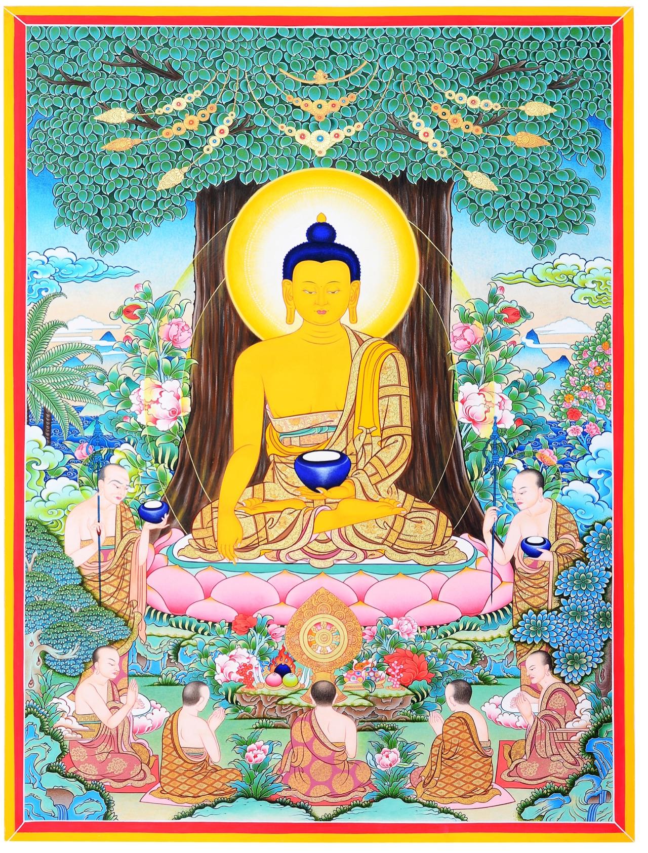 他們原為釋迦牟尼佛之父淨飯王派遣隨侍釋迦修道的臣僕,因見釋迦放棄苦行,舍之而去。釋迦成道後,首次於鹿野苑為他們説法,於是這五人出家,從此便有了最初的五比丘和比丘僧團。